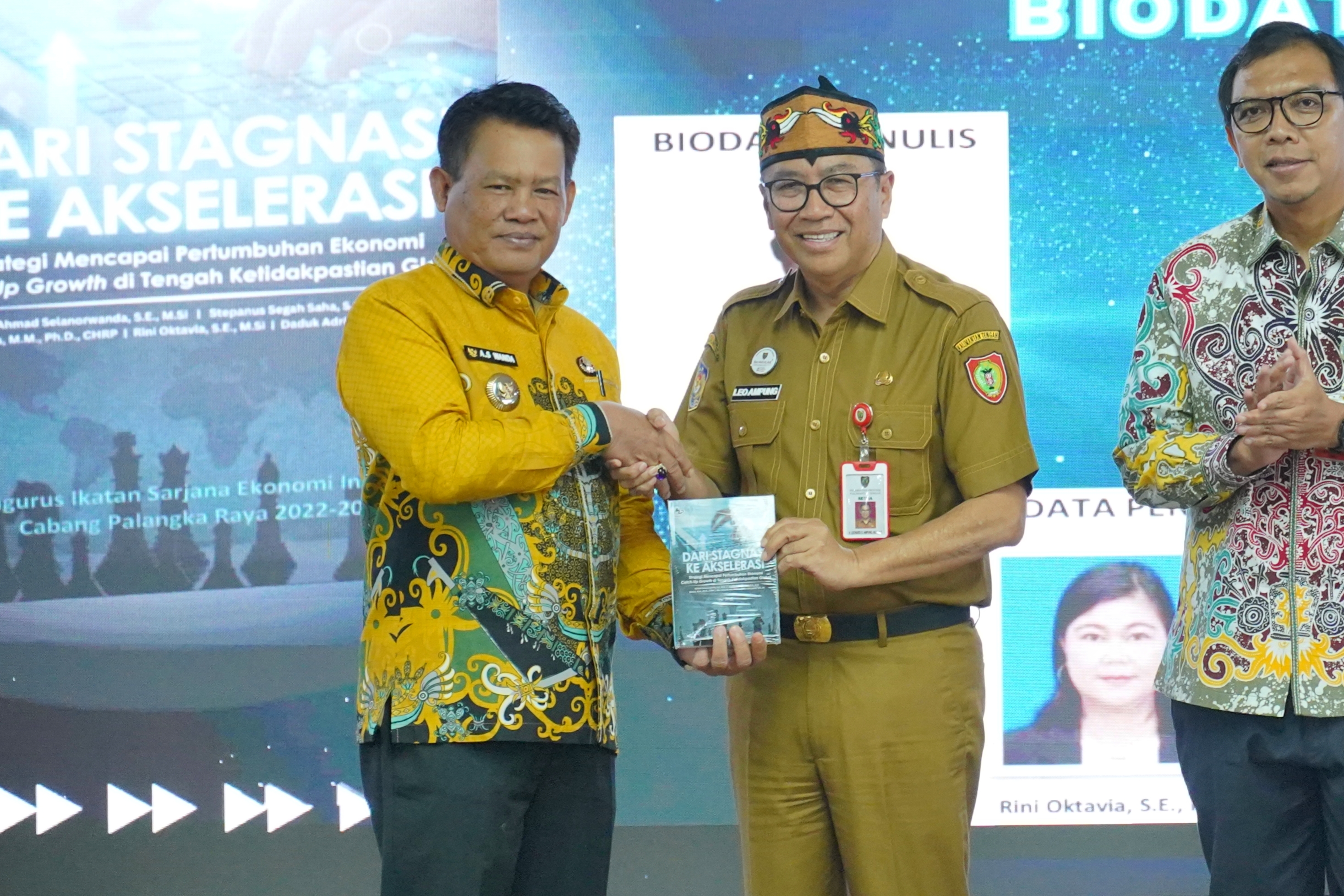PALANGKA RAYA – Pemerintah Provinsi Kalimantan Tengah menegaskan komitmennya dalam memperkuat ekonomi daerah dengan bertumpu pada potensi lokal dan kearifan komunitas. Hal ini disampaikan oleh Pelaksana Tugas (Plt) Sekretaris Daerah Provinsi Kalimantan Tengah, Leonard S. Ampung, yang juga menjabat sebagai Kepala BAPPERIDA Kalteng, saat membuka Talk Show bertajuk “Penguatan Ekonomi Daerah Berbasis Lokal dan Kearifan Komunitas” yang digelar Ikatan Sarjana Ekonomi Indonesia (ISEI) Cabang Palangka Raya, Senin (29/09/2025), di Aula Jayang Tingang, Kantor Gubernur Kalteng.