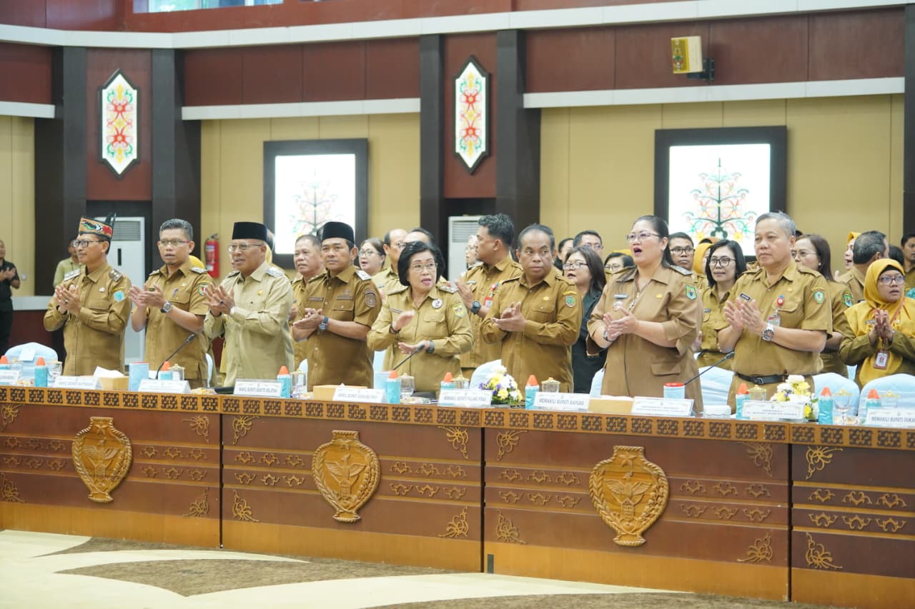 “Melalui kegiatan evaluasi ini, kita ingin menilai sejauh mana capaian program tahun 2024 hingga semester I tahun 2025, mengidentifikasi kendala yang dihadapi, serta merumuskan rekomendasi perbaikan agar langkah kita ke depan semakin tepat sasaran,” ujar Leonard saat membacakan sambutan Gubernur H. Agustiar Sabran.