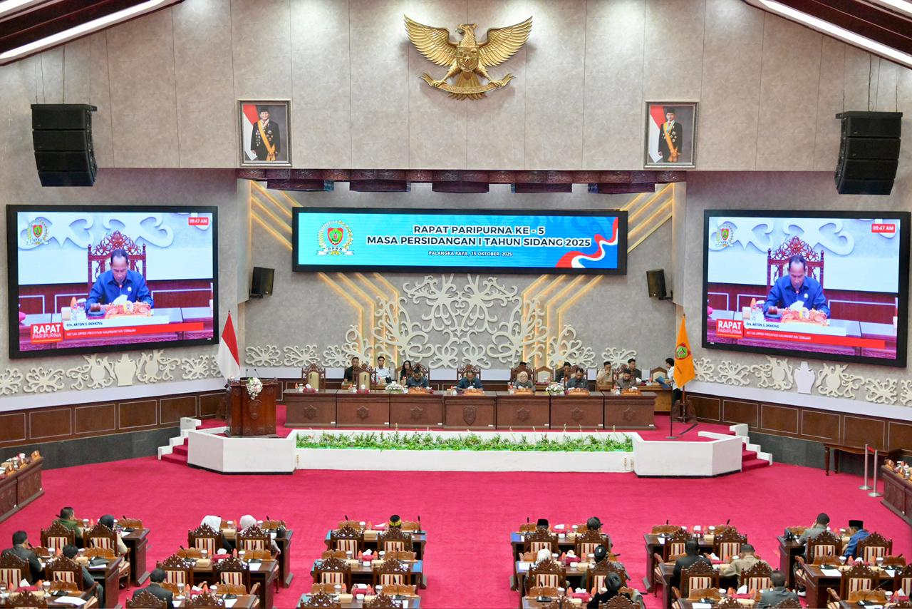Palangka Raya – Plt. Sekretaris Daerah Provinsi Kalimantan Tengah yang juga Kepala Badan Perencanaan Pembangunan, Riset dan Inovasi Daerah (BAPPERIDA) Provinsi Kalimantan Tengah Leonard S. Ampung menghadiri Rapat Paripurna Ke-5 Masa Persidangan I Tahun Sidang 2025 yang berlangsung di Ruang Rapat Paripurna DPRD Provinsi Kalimantan Tengah, Rabu (15/10/2025).